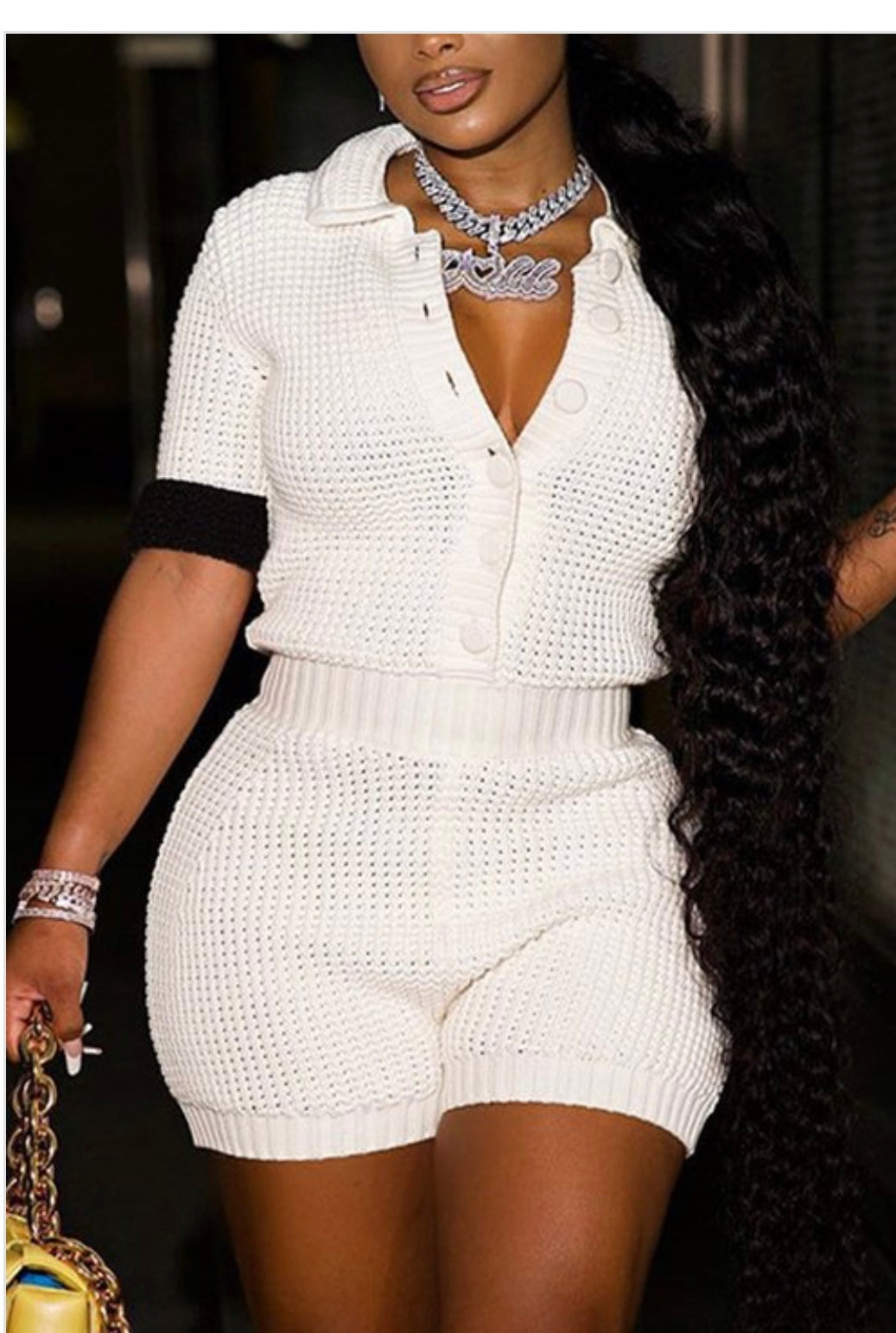 White mesh 2 piece short set